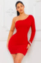 One sleeve mini red dress